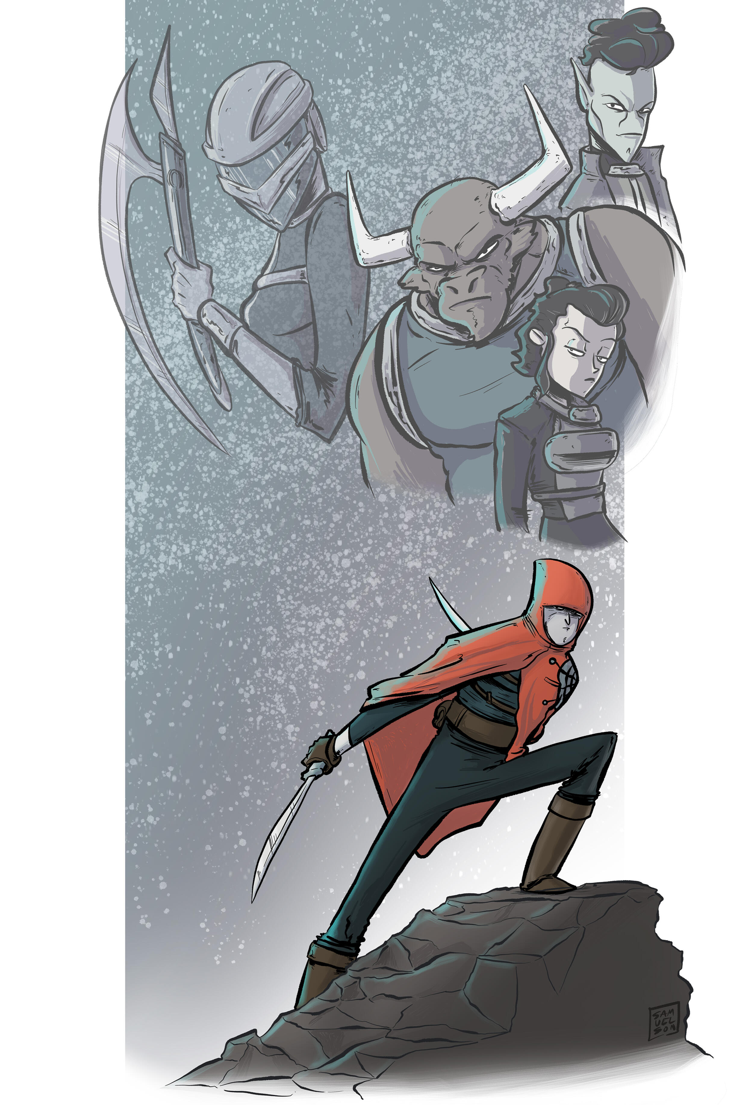 After getting a good handle on the idea from the designer, I created a number of sketches for the character design along with a few scenarios in which he could be placed.